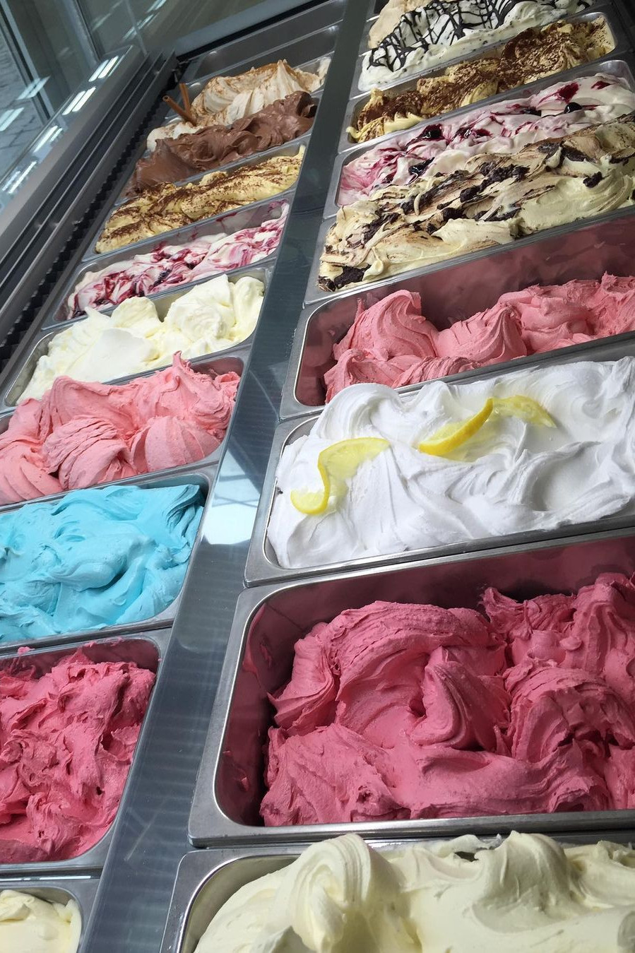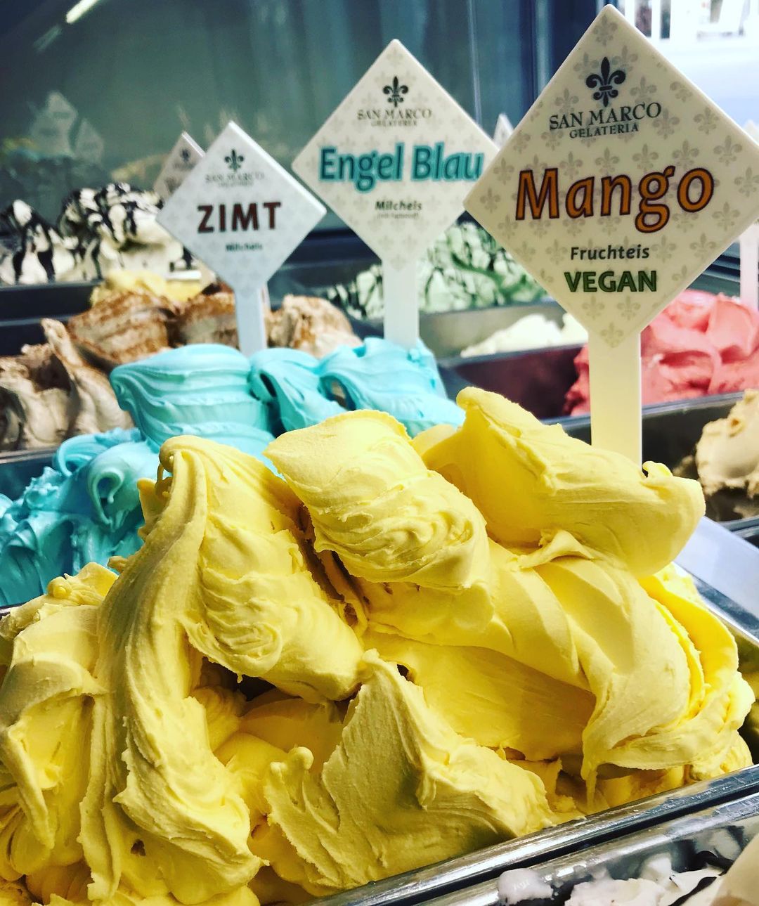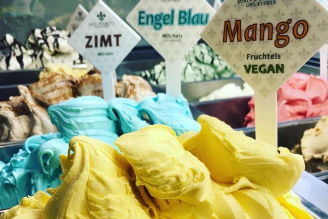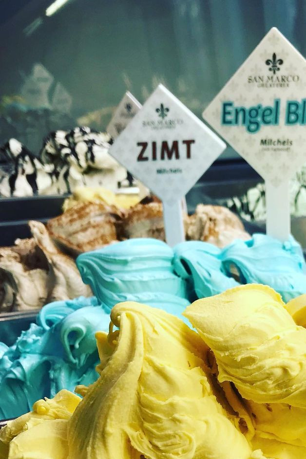 Das Eiscafé San Marco kennt die Rosenheimer Eisliebhaber besonders gut, denn seit 1997 ist Maurizio bereits an diesem Standort bekannt für seine Eiskreationen. Im ersten Stock wird fleißig produziert und in der Fußgängerzone kann dann nach Herzenslust geschlemmt werden. Je nach Altersstufe liegen unterschiedliche Sorten im Trend. Während sich die Kinder vom Blauen Engel magnetisch angezogen fühlen, tendieren Frauen gerne zu Joghurtsorten und die ältere Bevölkerung bleibt solide bei bewährten Sorten wie Vanille oder Schokolade. Einen Geheimtipp, den es nicht allerorts zu finden gibt ist übrigens Zimt. Wusstet ihr eigentlich, dass die blaue Sorte völlig natürlich hergestellt wird? Die blaue Spirulina Alge verleiht dem "Engel Blau" seine vermeintlich künstliche Farbe.