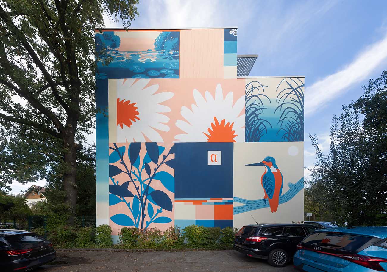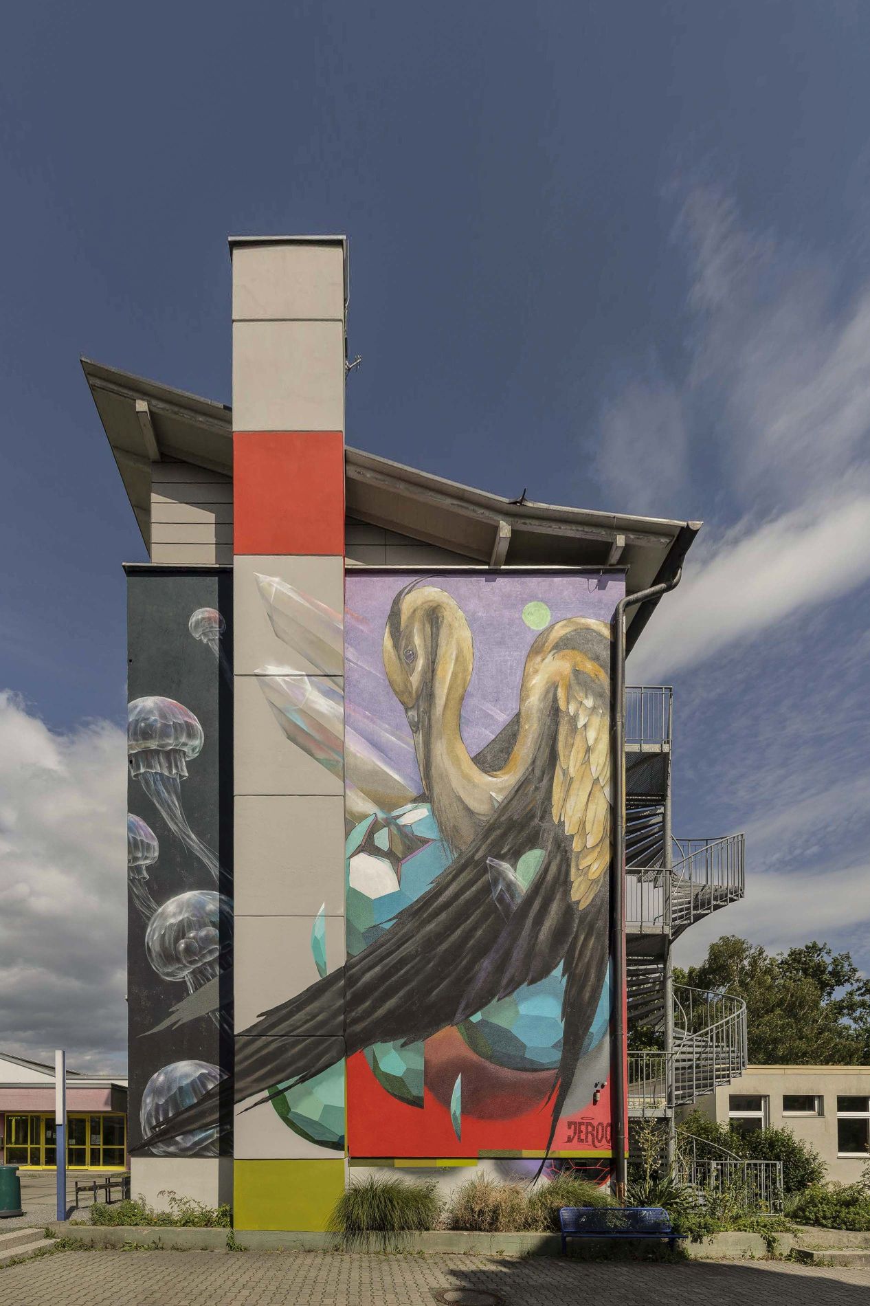 Die beiden preisgekrönten Mannheimer Kinderbuchillustratoren Mehrdad Zaeri und Christina Laube wollen mit ihren Wand-Kunstwerken vor allem eine Stimmung erzeugen und eine Geschichte erzählen. Die Umgebung der Fassade bringt ihnen hierzu immer die Idee zum Motiv.