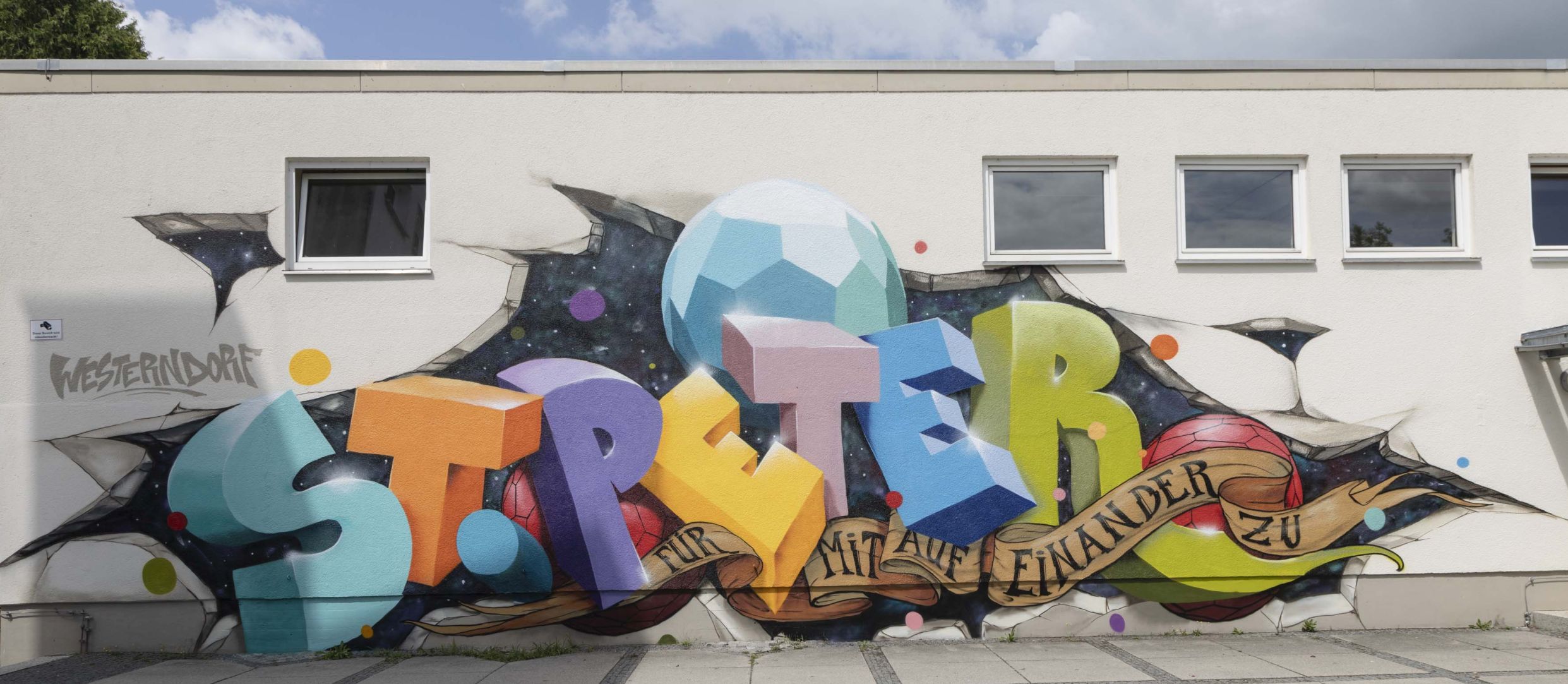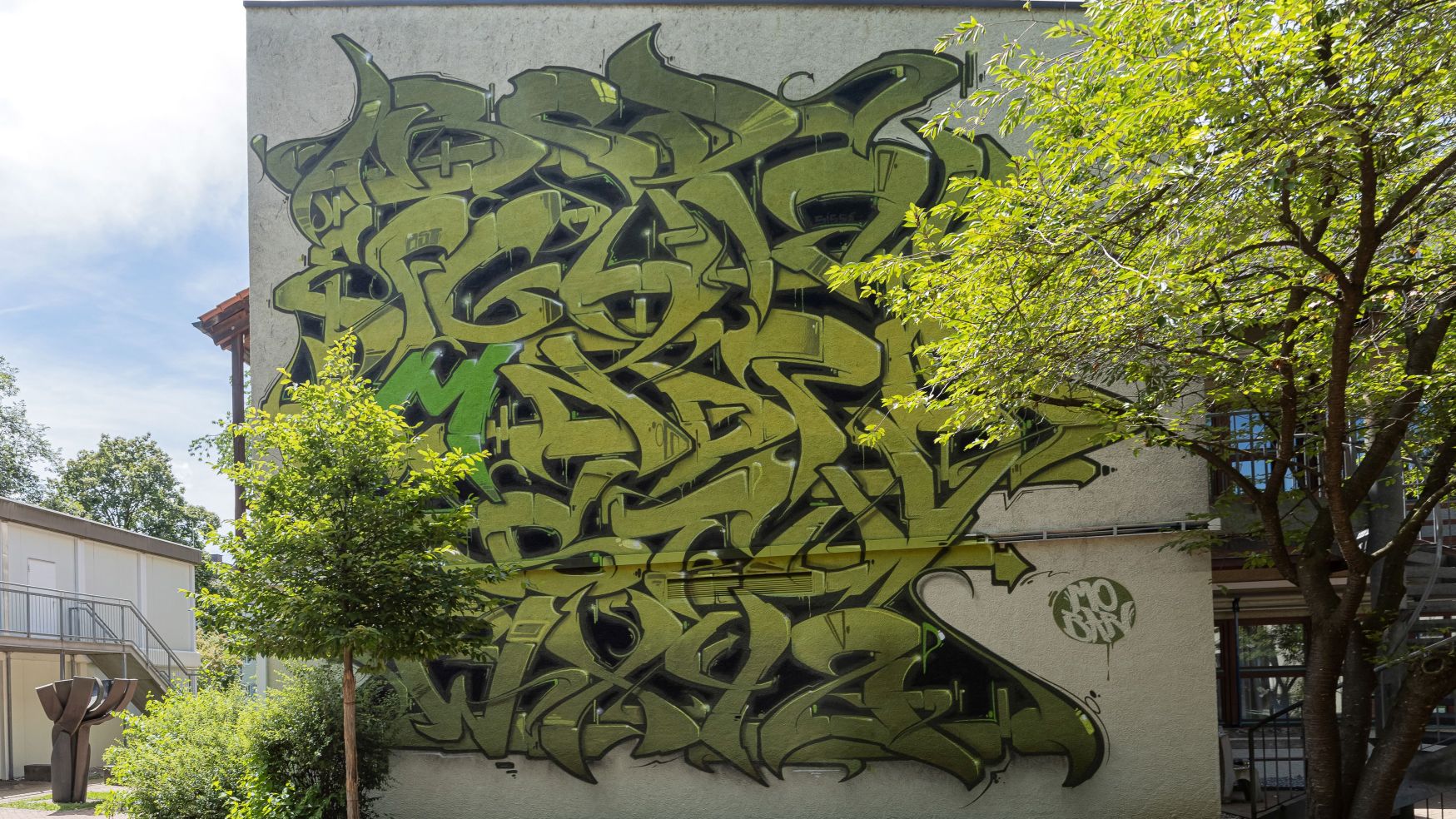 Auszug aus dem Schulprojekt der Johann-Rieder Realschule: Geleitet vom Künstlerduo ATE gestalteten Schülerinnen und Schüler der Johann-Rieder-Realschule in einer Workshop-Woche mehrere Wände auf ihrem Schulgelände.
