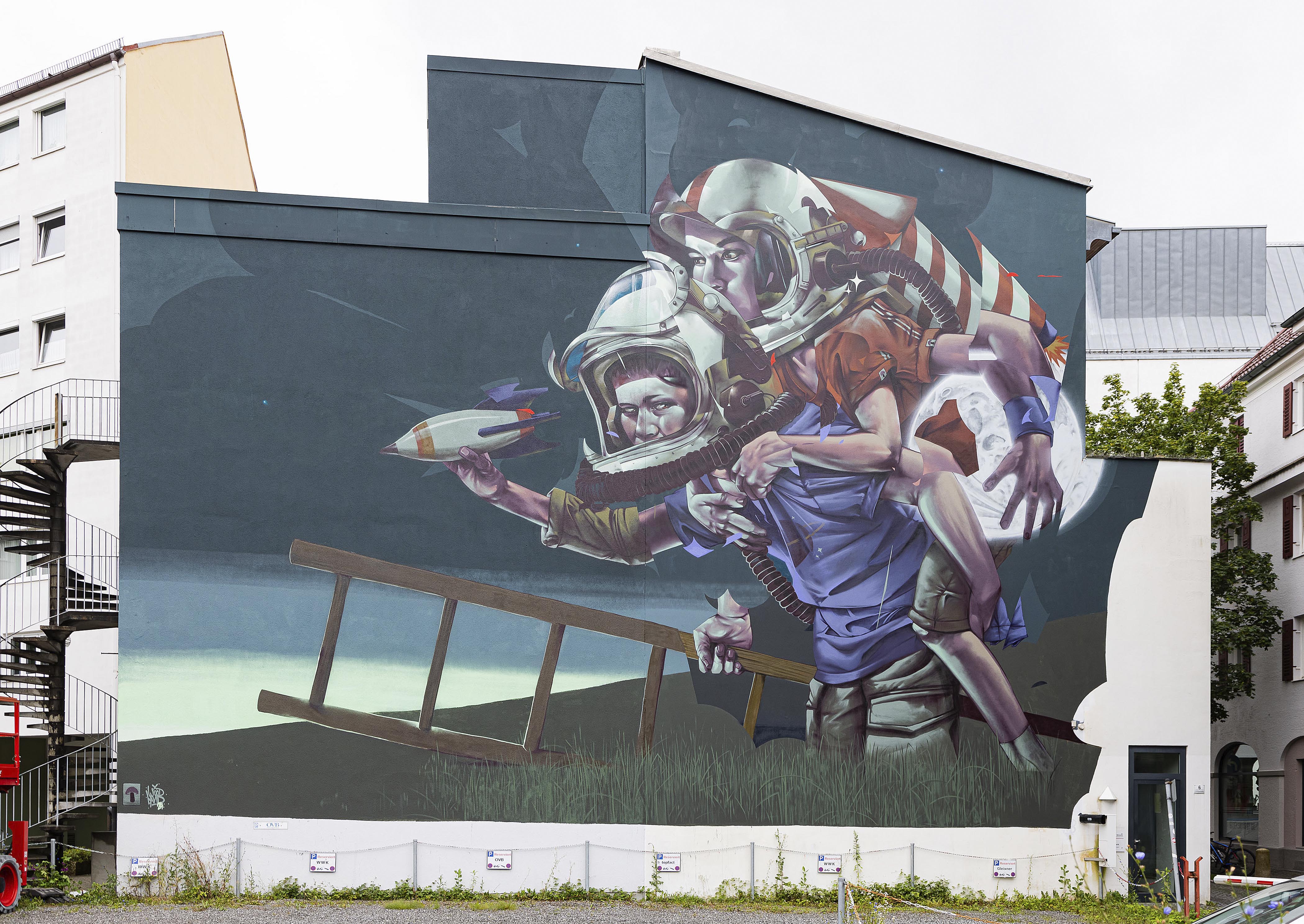 Der in Rosenheim geborene Julian Strohmeier gestaltet Street Art vor allem als Kunst für alle. Sie ist für ihn ein Zeichen gegen Besitz, gehört weder den Schaffenden noch den Auftraggebenden, sondern allen, die sich Zeit nehmen, sie zu genießen und anzuschauen.